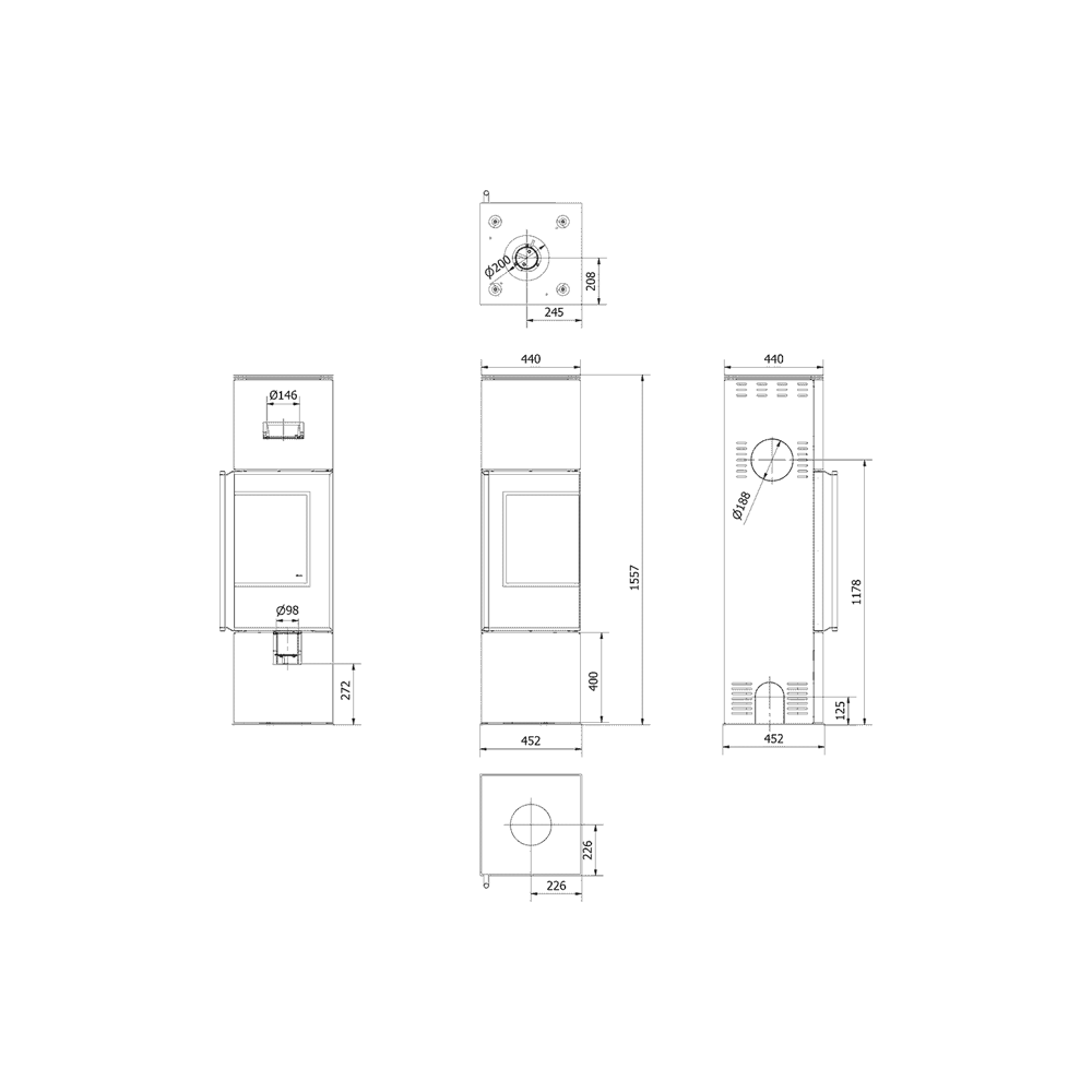 452x452x1557mm
